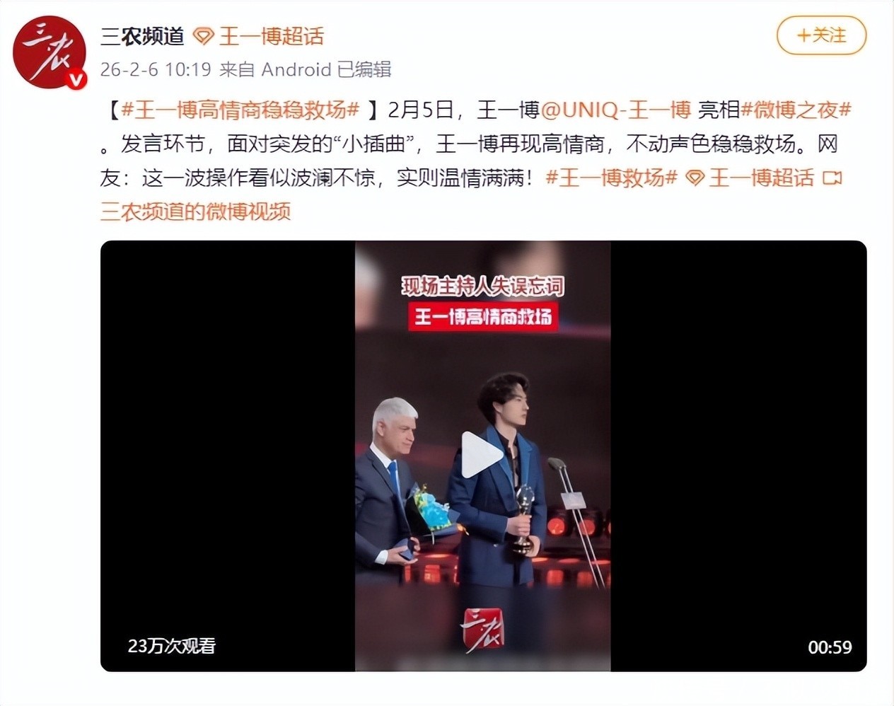 这一幕,真实发生于2026年微博之夜盛典现场。