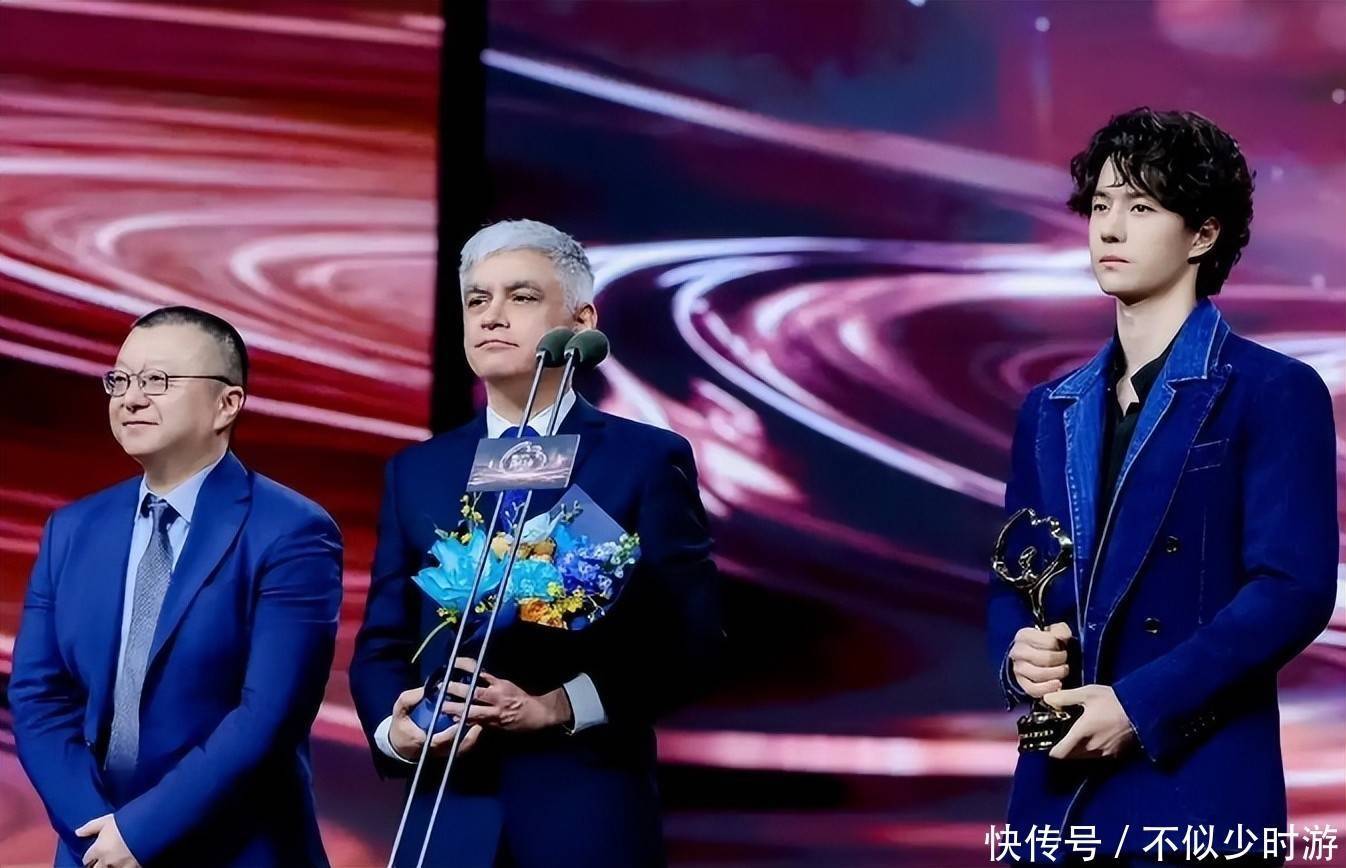 当晚,王一博与华纳探索集团副总裁魏克然,因联合出品纪录片《探索新境2》共同登台领奖。